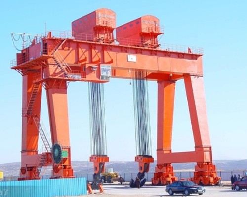 1、門(mén)座式起重機(jī):門(mén)座起重機(jī)是具有沿地面軌道運(yùn)行,下方可通過(guò)鐵路車(chē)輛或其他地面車(chē)輛的門(mén)形座架的可回轉(zhuǎn)臂架型起重機(jī)。它廣泛應(yīng)用于港口、碼頭貨物的機(jī)械裝卸、造船廠船舶的施工、安裝,以及大型水電站工地的建壩工程,是實(shí)現(xiàn)生產(chǎn)過(guò)程機(jī)械化不可缺少的重要設(shè)備。